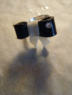 Petit noeud en pâte polymère de couleur noir et blanc , et avec un petit strass. Fabriquer main .Garantie sans nickel .